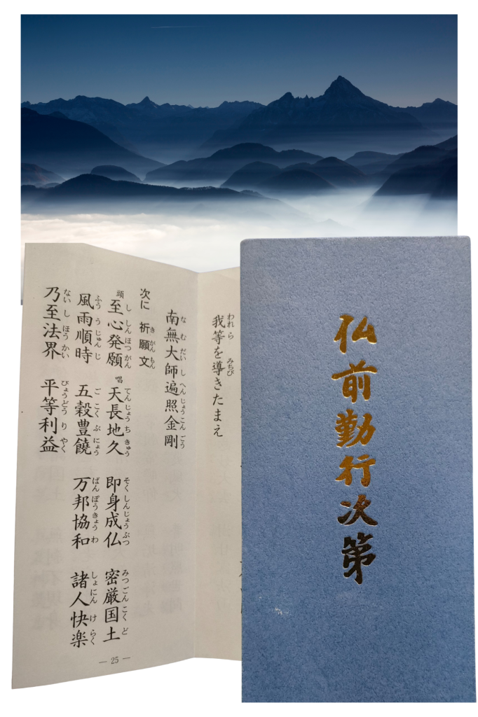 真言宗でお唱えする『祈願文』という短いお経があります。この世の久しい幸せを祈願するもので、お唱えする人自身の幸せをも含まれます。